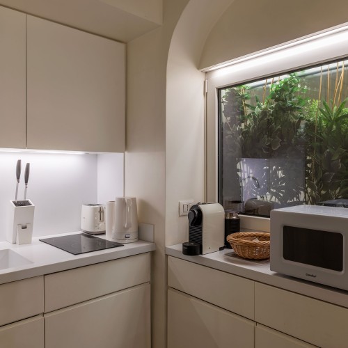 La posizione è invidiabile: Villa Borghese si raggiunge in meno di 5 minuti a piedi, mentre Piazza di Spagna e la sua stazione Metro (Linea A) sono comodamente accessibili anche tramite un passaggio sotterraneo. Da lì, potete esplorare facilmente icone romane come Fontana di Trevi, Pantheon e Piazza Navona.