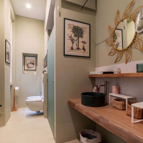 - Un secondo bagno, situato nel corridoio, a servizio della zona comune e degli ospiti.